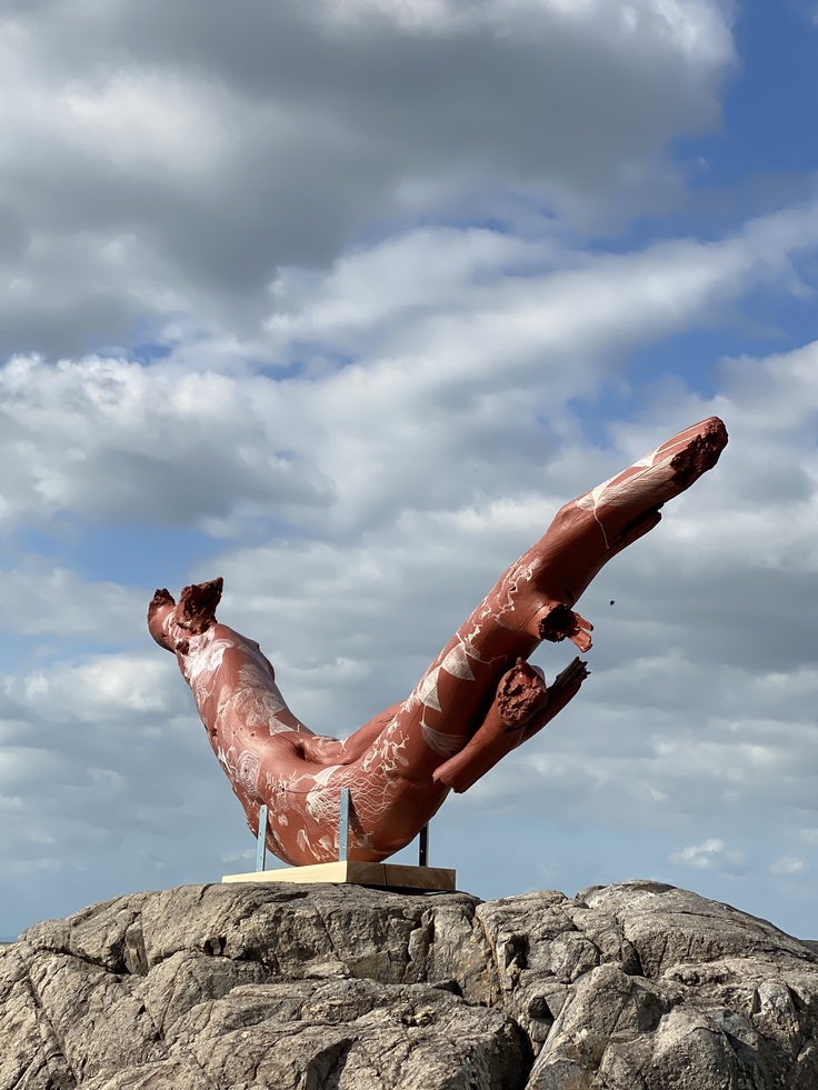 えー、まじー?なんて声もどこ吹く風。トゥシャールもニヤニヤしながら作品に手をかけると2人ですたすたと岩を登ります。ほぼ足元見ずに。