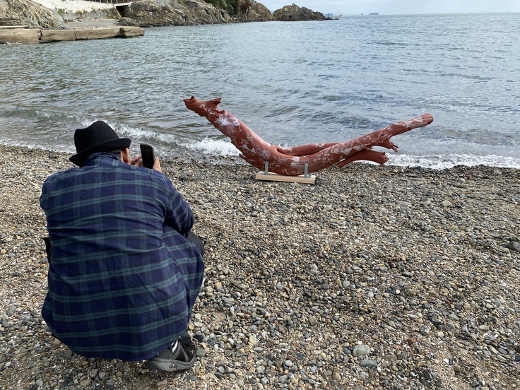 充分に作品撮影できていなかったので、メイン作品「生命の舟」を赤穂の風景の中に持ち込んで撮影会をしよう!と、海辺をロケハン。