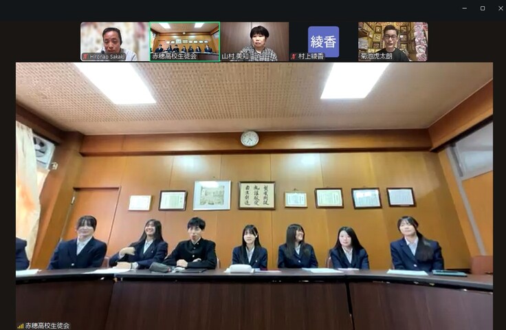 青森弘前の虎太朗君と、イベントを取り仕切ってくれる赤穂高校の生徒さんとのZoomによる初打ち合わせを行いました。虎太朗君のお部屋は、ねぷたグッズに囲まれていましたよ~😯