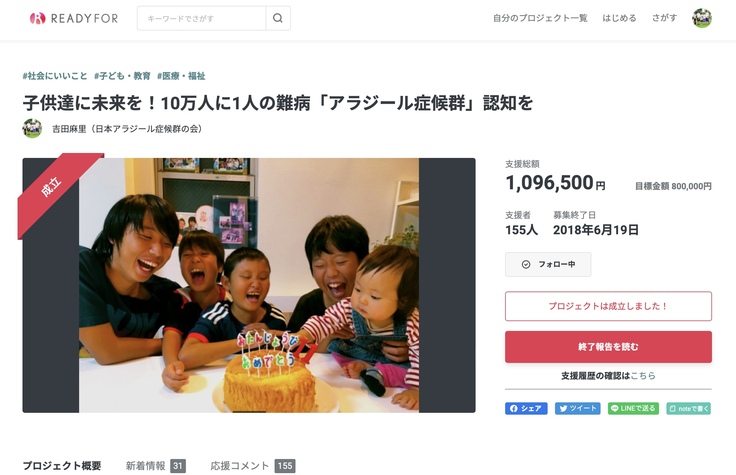 もっともっと多くの人にアラジール症候群のことを知ってもらいたいため、患者さんの実態を集約し実態調査書として医療者へ届けるために、クラウドファンディングに挑戦します!