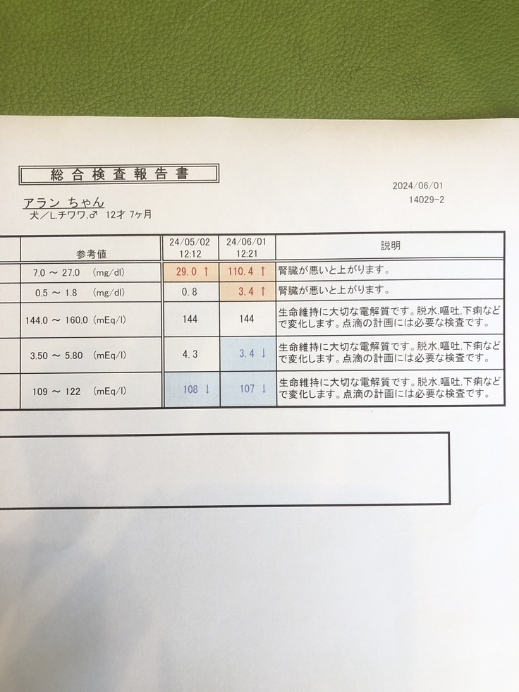 こんなに腎臓が悪くなっていると、本人もかなりしんどいと思う、と先生もおっしゃっていました。