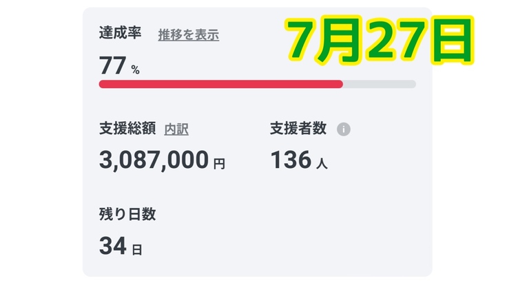 8月30日迄の目標金額まで残り¥100万を切りました‼︎