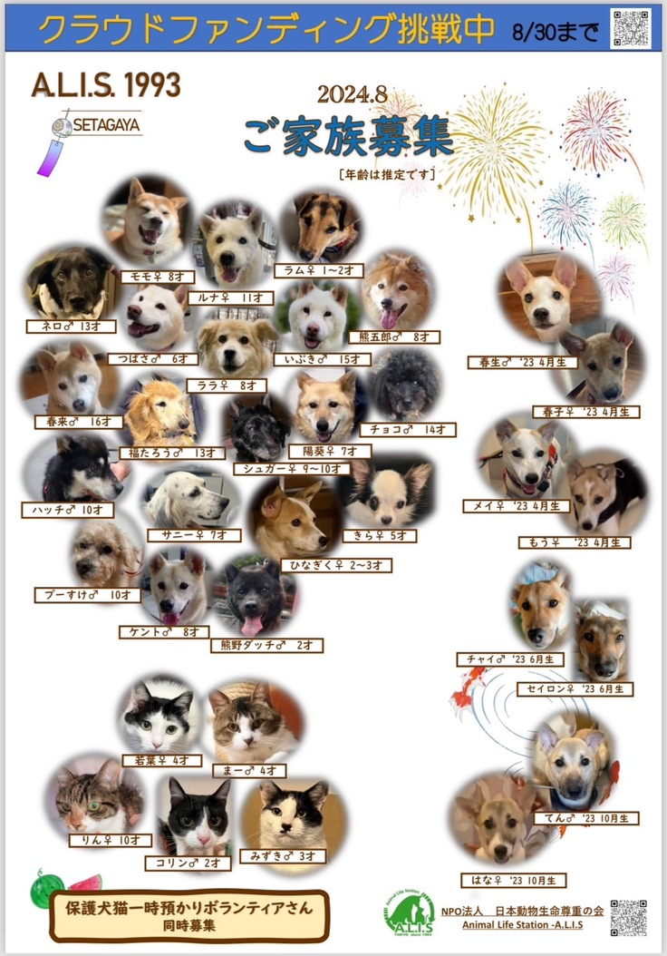 今回の活動報告は、今現在(2024,8月)の家族募集中の子たちをお知らせいたします。