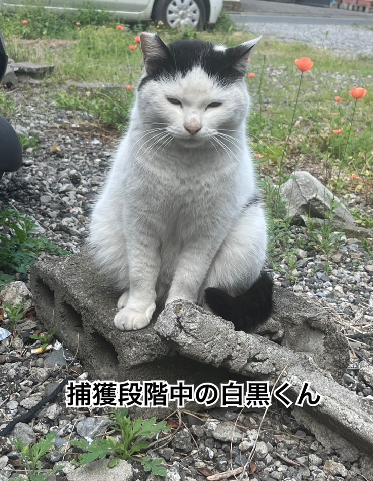 昨年から捕獲保護を試みている地域猫の白黒君。