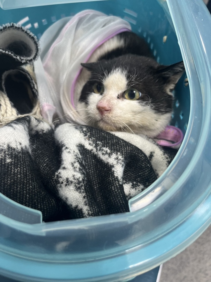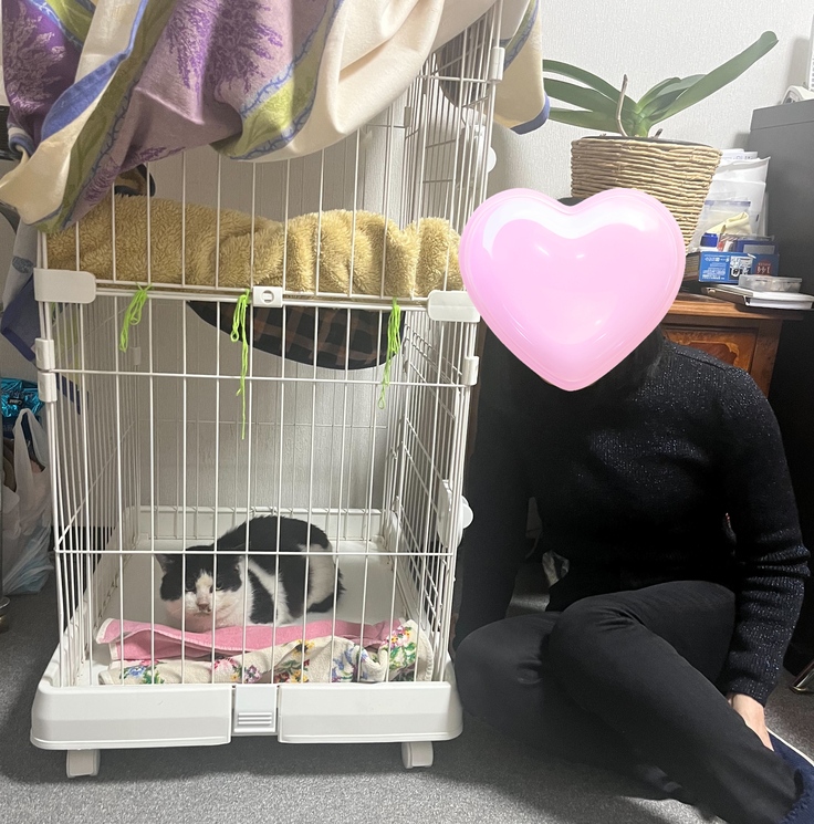 退院後、捕獲段階中の白黒君を預かってくださる予定だった新しい預かりさん(昨年のクラウドファンディングで初めてアリスのことを知り ご支援のご協力をくださったKさんご夫妻)が急遽シロクロ君を預かってくださることに。