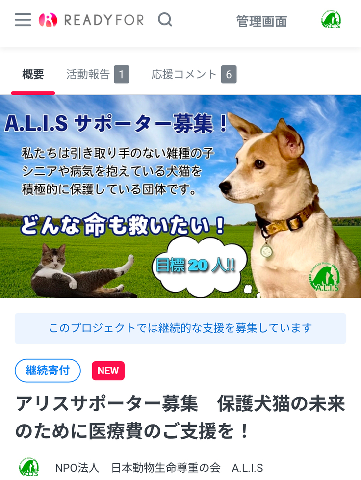 🐶🐱A.L.I.Sサポーター募集 はじまりました!🐾