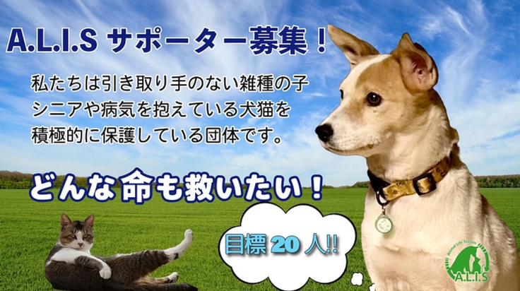 アリスサポーター募集 保護犬猫の未来のために医療費のご支援を!