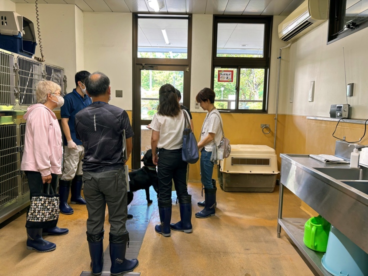 センターには、新しい家族を待つ一般譲渡犬猫たちが暮らしており、収容棟の見学では職員の方々から現場の課題や取り組みについて詳しくお話を伺うことができました。
