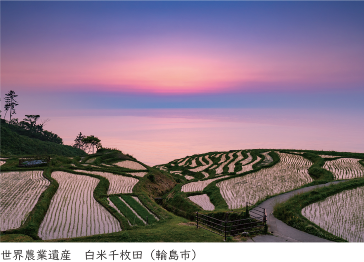 “能登半島の玄関口”とも呼ばれる羽咋市は、石川県の加賀と能登のちょうど境目に位置します。『 能登の里山里海 』(能登半島の4市5町) として、日本で初めて世界農業遺産(GIAHS)に認定され、豊かな自然と恵まれた地域資源が、四季折々にこの地を訪れる人を楽しませてくれるところです。