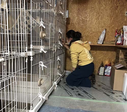 レスキューした猫ちゃんが保護されているお部屋には、朝お世話チーム、昼お世話にチーム、夜お世話チームとみんなでリレーで行っております。