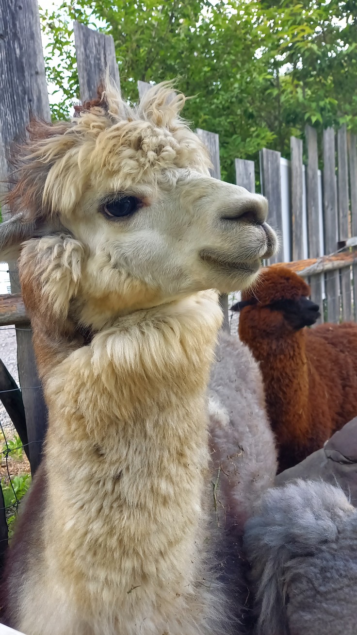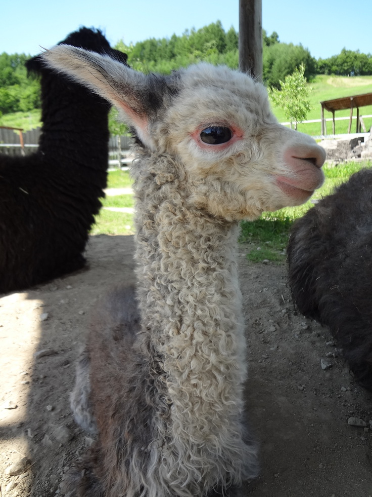 首の毛はクルクルしてて、目と鼻の周りがピンク色💗なんてキレイなアルパカなんでしょう!