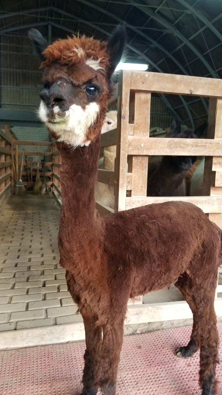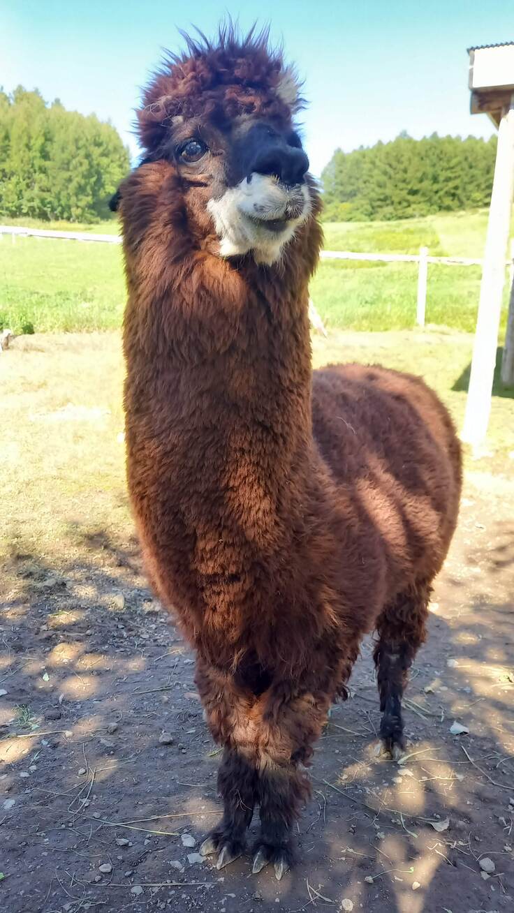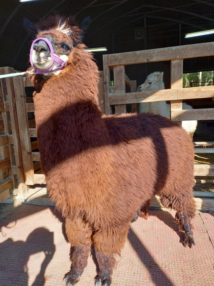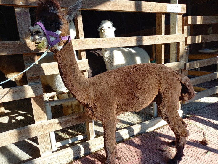 チョコさんは、牧場にいるアルパカの中では小柄な方です。