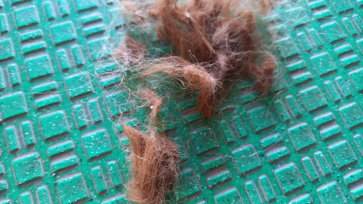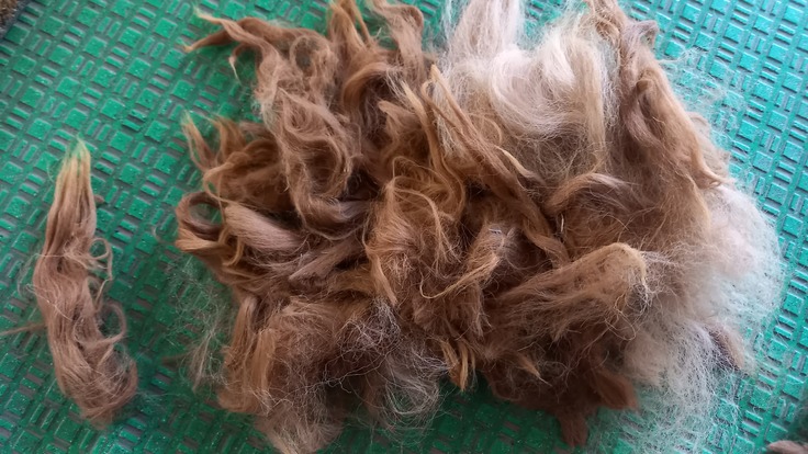 小分けにするとことで、間に入り込んだ砂も少しは落ちるし、毛刈りの時に二度刈りした短い毛を取り除きやすいのです。