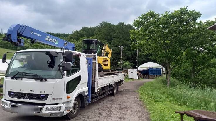 普段の放牧準備に加え、エサ台やらバケツやら掃除道具やら…全てを運び出し、アルパカたちが畜舎へ入れないようネットも最終調整。