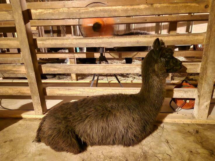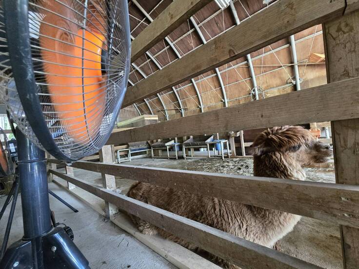床がコンクリートになってから、きっと涼しいのでしょうね。メスパカさんは営業中でもすぐに畜舎へ帰って休んでしまいます。良かった良かった!