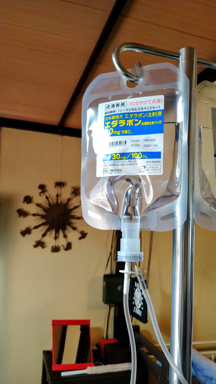 その為にも現時点で必要なALSの進行遅延薬「エダラボン、ラジカット」点滴(17クール目)を本日から開始しました。