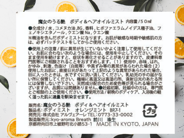 🔶ボディ&ヘアオイルミスト(オレンジミント)の成分表示