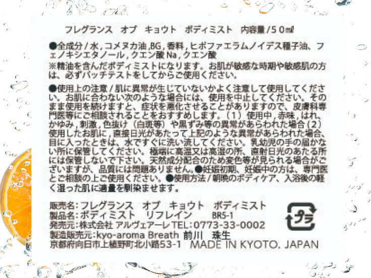 🔶ボディ&ヘアオイルミスト(リフレイン)の成分表示