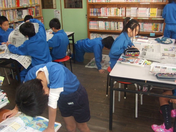 熱心に新聞を読む5年生、なかなかカッコイイです(^v^)