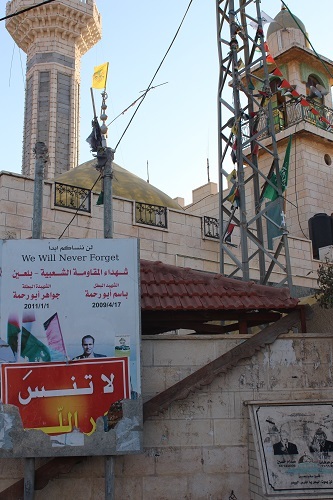 セルビスを降りると、モスクの前に写真が貼られていました。映画でも撮影されていましたが、デモ中にイスラエル兵に殺害された「フィール」さんの写真です。