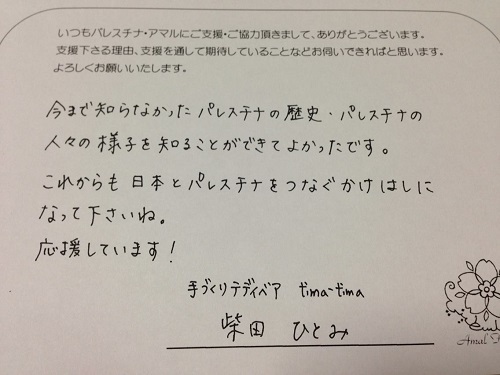みなさん、こんにちは。パレスチナ・アマルの北村です。