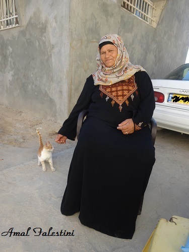 ウンマとねこ。少し緊張されておりますが。中庭でおくつろぎの所、撮らせていただきました。パレスチナ刺繍のドレスがステキです。