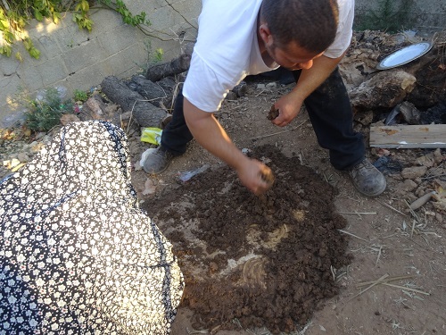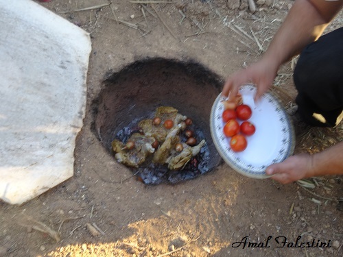泊まらせて頂いたお礼に、バーベキューの食材を提供させていただきました。猫にあげていた鶏の頭は、その残りです。庭に穴を掘り、鶏肉をいぶします。