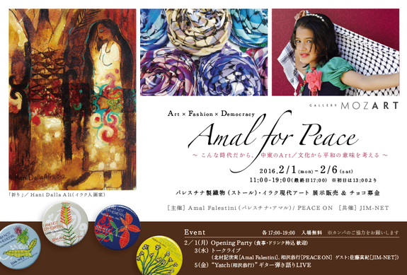 主催:Amal Falestini(パレスチナ・アマル),PEACE ON