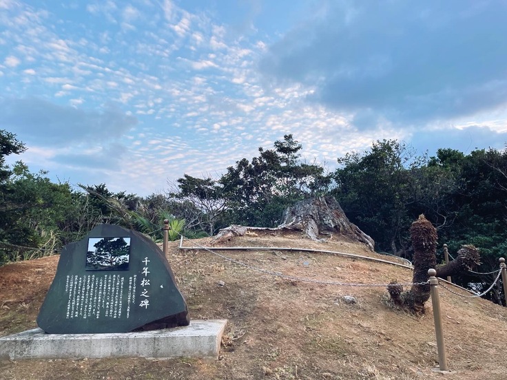 松くい虫(マツ材線虫病)被害に遭った奄美市の朝仁の千年松。