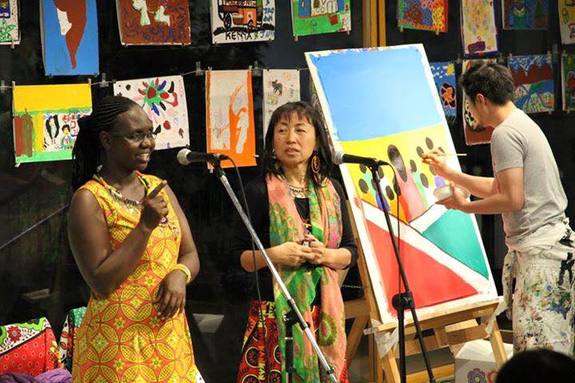 東京では、今年2月にマゴソスクールに壁画を描いてくれたミヤザキケンスケ君のライブペイントもありで、盛りだくさんでした。