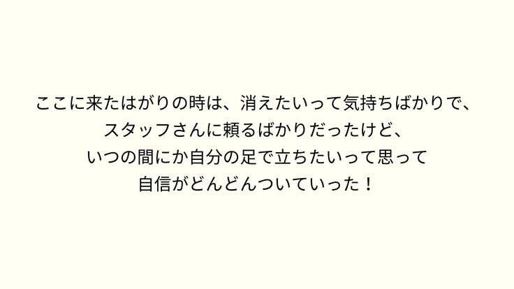 私たちは、痛みを抱えながらも「これから」を自分自身で選んで決めていこうとする彼らの選択を尊重していますし、これからも彼らに伴走していきます。