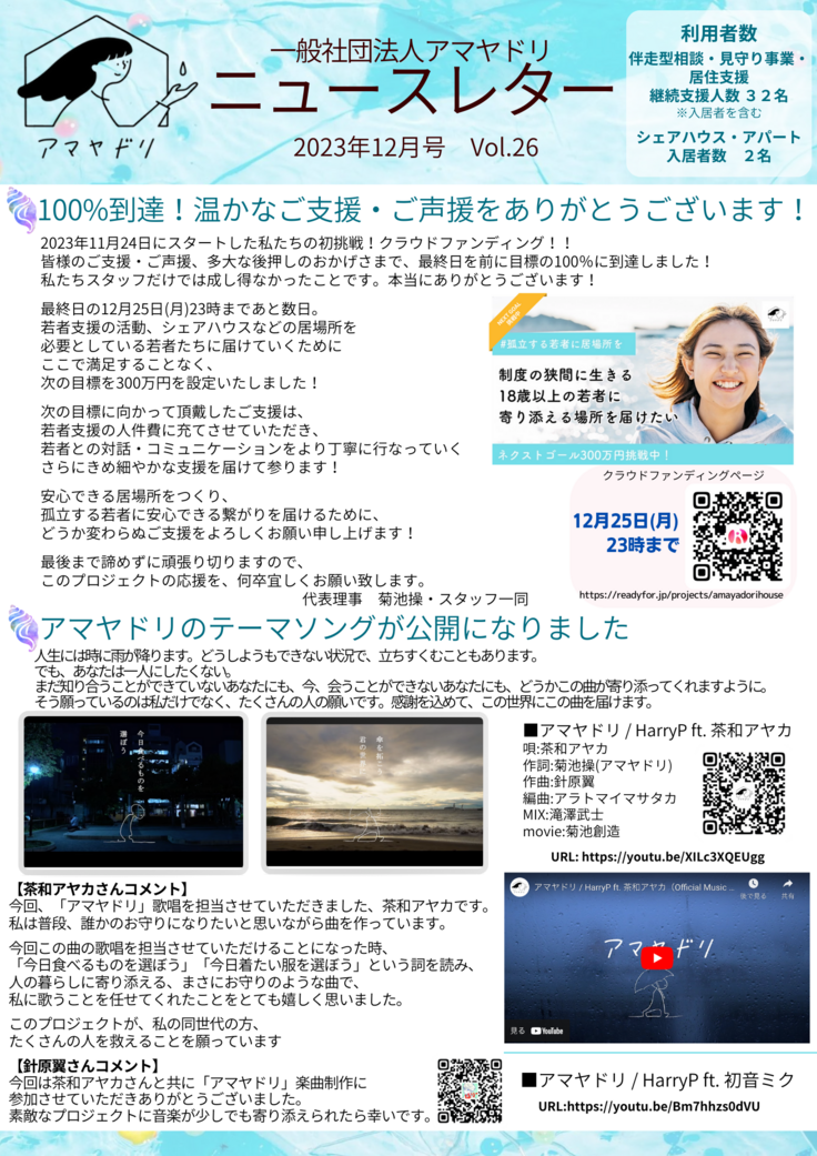 あと2日!アマヤドリニュースレター12月号のお知らせ