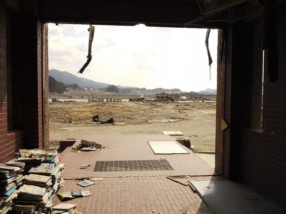 4月7日の図書室の開館を前に、陸前高田市立図書館の跡地に行きました。図書館員のご冥福をお祈りいたしました。