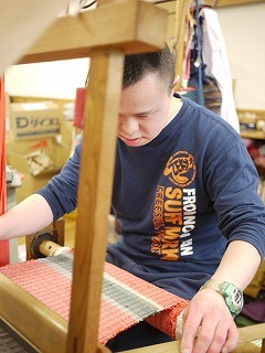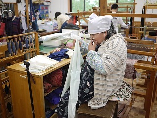 皆さまにお届けするしおりは、開所以来取り組まれている裂き織り(ハックでは「花咲き織り」といっています。)の手法で作られています。