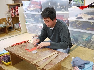 名人の男子!鮮やかな色の布は、裂き織ではなく、まさに
