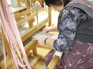 その裂かれた布を、織り機でぱったん、ぱったんと織っていきます。