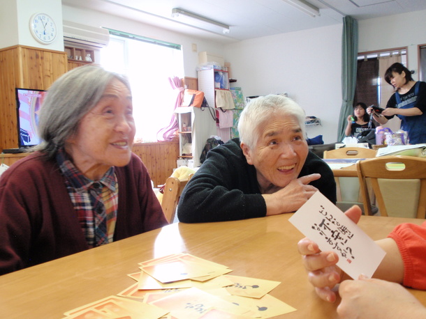 ★カード使用時は、一枚選んでもらい、みんなでシェアして掘り下げていく事で、「あぁー!!」と周りから共感の声があがり、盛り上がりました。 「うーん」と考える事に繫がり脳の活性化になると思います。 そして、思い出した時の、「懐かしい!」からの話が弾むのが、楽しみの1つとして実施出来ていました。 また、その様子を見たスタッフからは、質問は上手く出来ないけど、一緒に考える。 共に答えるなどの、楽しみ方でコミニュケーションを楽しむ事が出来ていました。