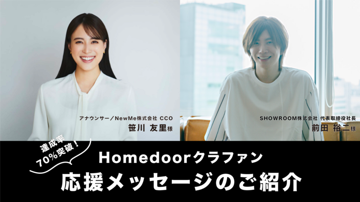 Homedoorの皆様の活動をメディアでお見かけすることを増えた昨今。本気で社会を変えたいという思いと実行力にいつも感銘を受けています。応援させていただきます。