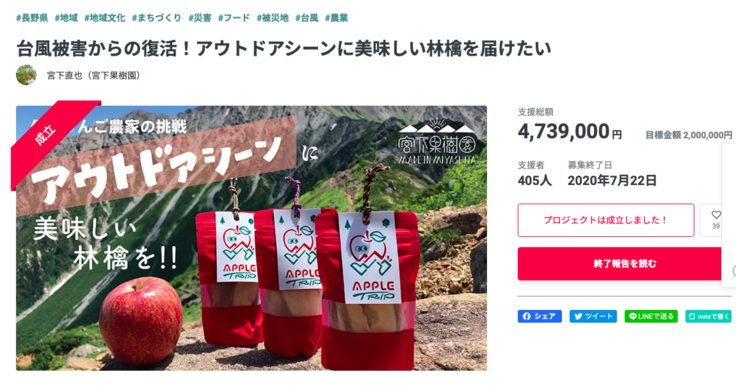 【クラウドファンディング】台風被害からの復活!アウトドアシーンに美味しいリンゴを届けたい