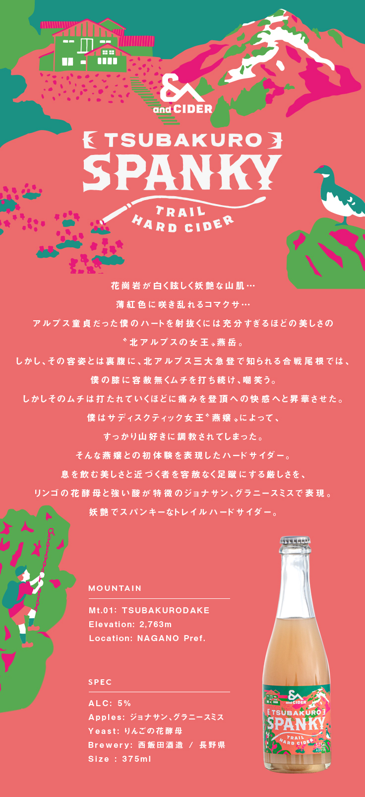 ●TSUBAKURO SPANKY (ツバクロスパンキー) 375ml フローラルサイダー(りんごの花酵母×りんご)6本 ALC:6% ¥9,900-