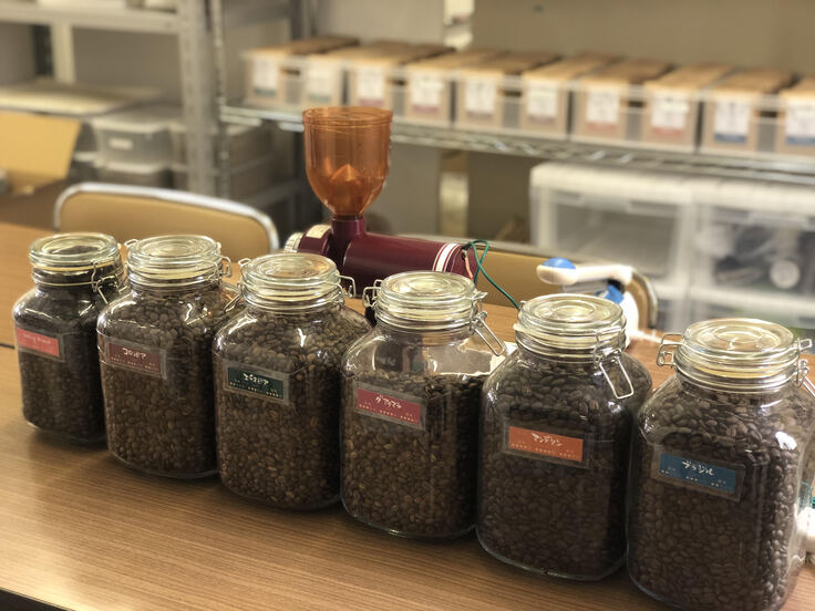 私たちは、内職だけではなく、自分たちの製品として【自家焙煎珈琲豆】を主軸に販売を積極的に行い、工賃向上に努めています。