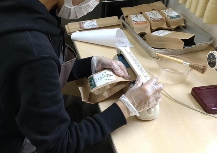 現在は毎月1,200袋の生産、売上げは毎月約12万円です。生産量を増やすことで、新規営業できる取引先も広がり、新設後の売上げ目標は50万円/月に設定できます。(1日4人で作業:250袋×20日 5,000袋/月が生産と試算)