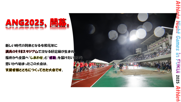 また、会場に足を運んでいただき、選手のパフォーマンスや競技場の雰囲気を楽しんでいただければうれしいです。必ず、これまでとは一風変わった「陸上競技」の姿を提供することをお約束いたします。