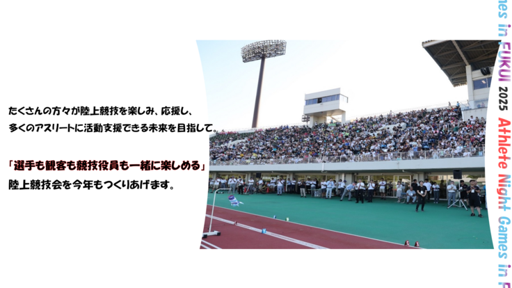 今年は、福井の夏の風物詩『 Athlete Night Games in FUKUI 』が『 FUKUI SPORTS SUMMIT 2025 』としてパワーアップ開催です!🔥
