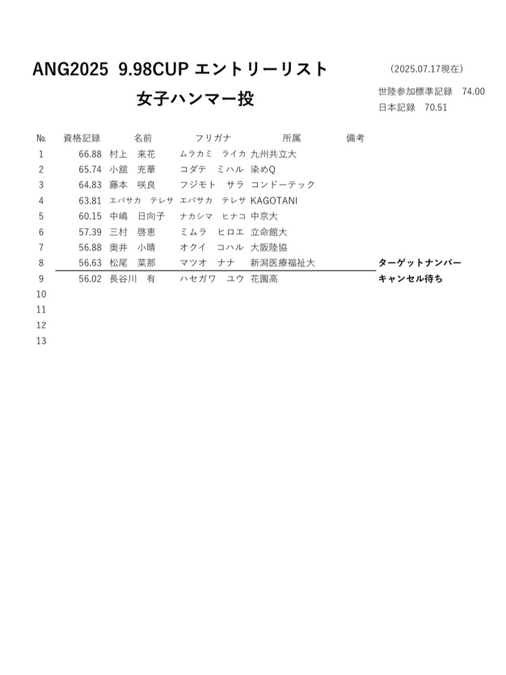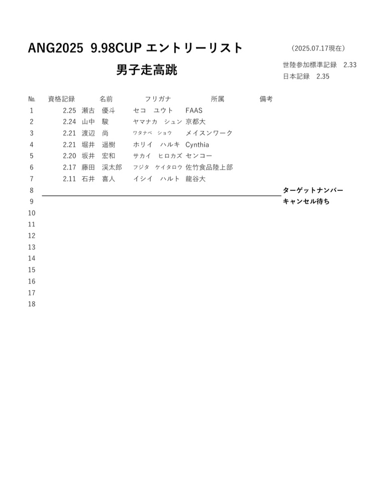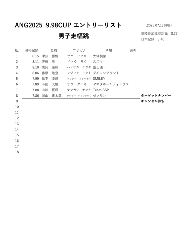 7月17日現在のエントリーリスト📝を公開させていたいただきます👀02