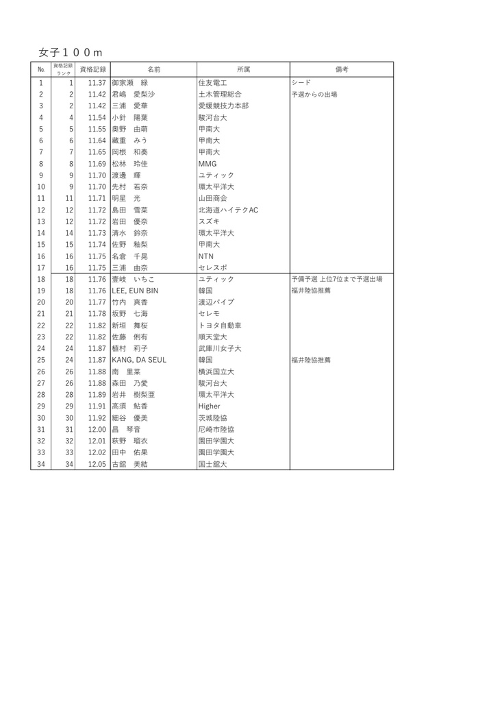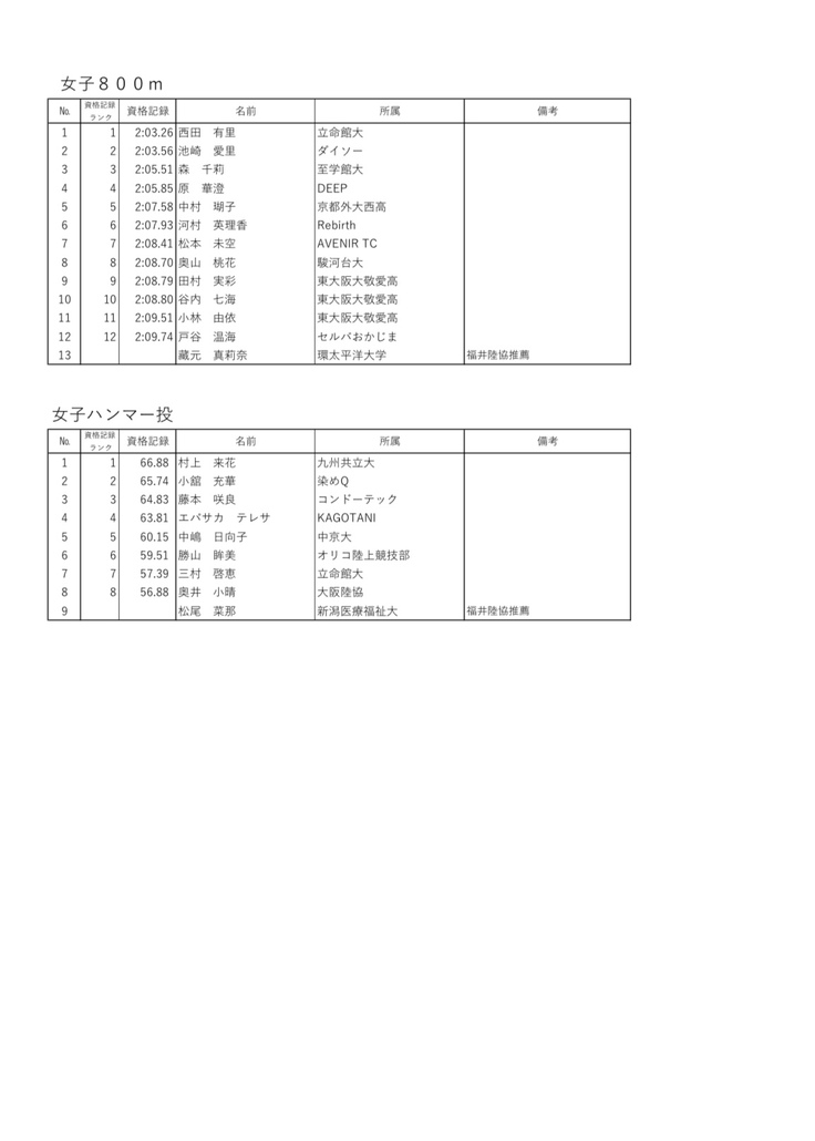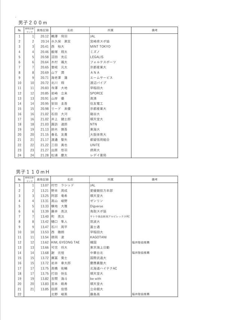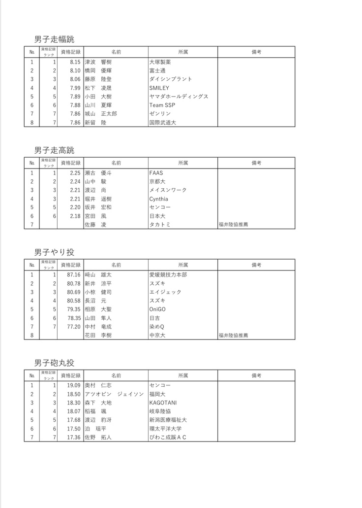 8月12日現在のエントリーリスト確定版🙆🏻♀️です!