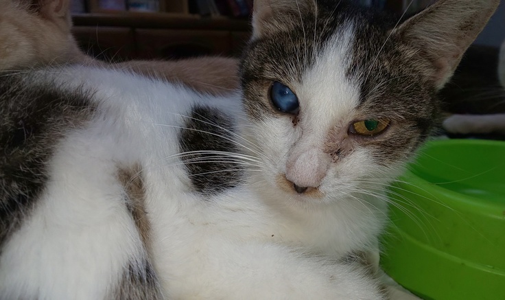 (外の過酷な環境で産まれ片目を失明した保護猫)