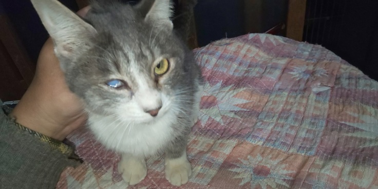 とメス猫と両目の膿を取り除く為の切開キズで目蓋が