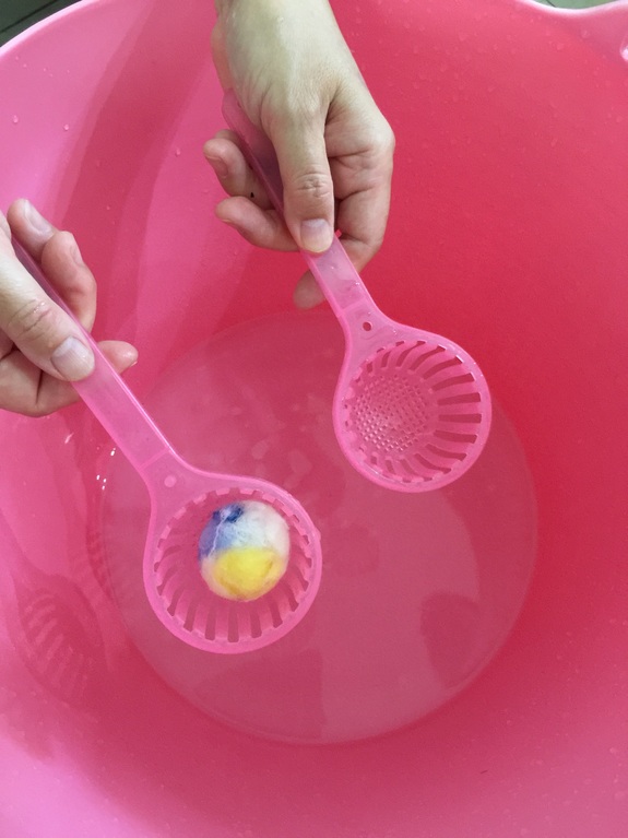 洗剤を少し入れたお湯の中でシャッフル!!!
