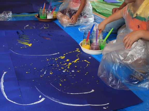 耳で音や旋律を聴きながら、どんどんと思い思いの宇宙を描いていきます。